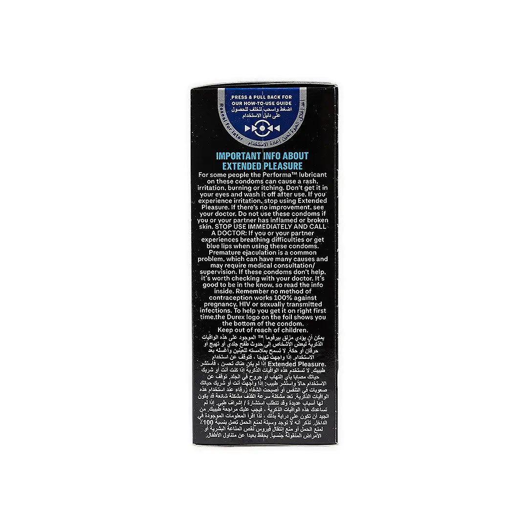 Main Ingredients & Their Benefits: Performa™ Silicone Lubricant: Contains 5% benzocaine, a local anesthetic that helps delay ejaculation, allowing for extended pleasure during intimate moments. Natural Rubber Latex: Provides strength and elasticity, ensuring a reliable barrier against pregnancy and STIs while maintaining a comfortable and natural feel.