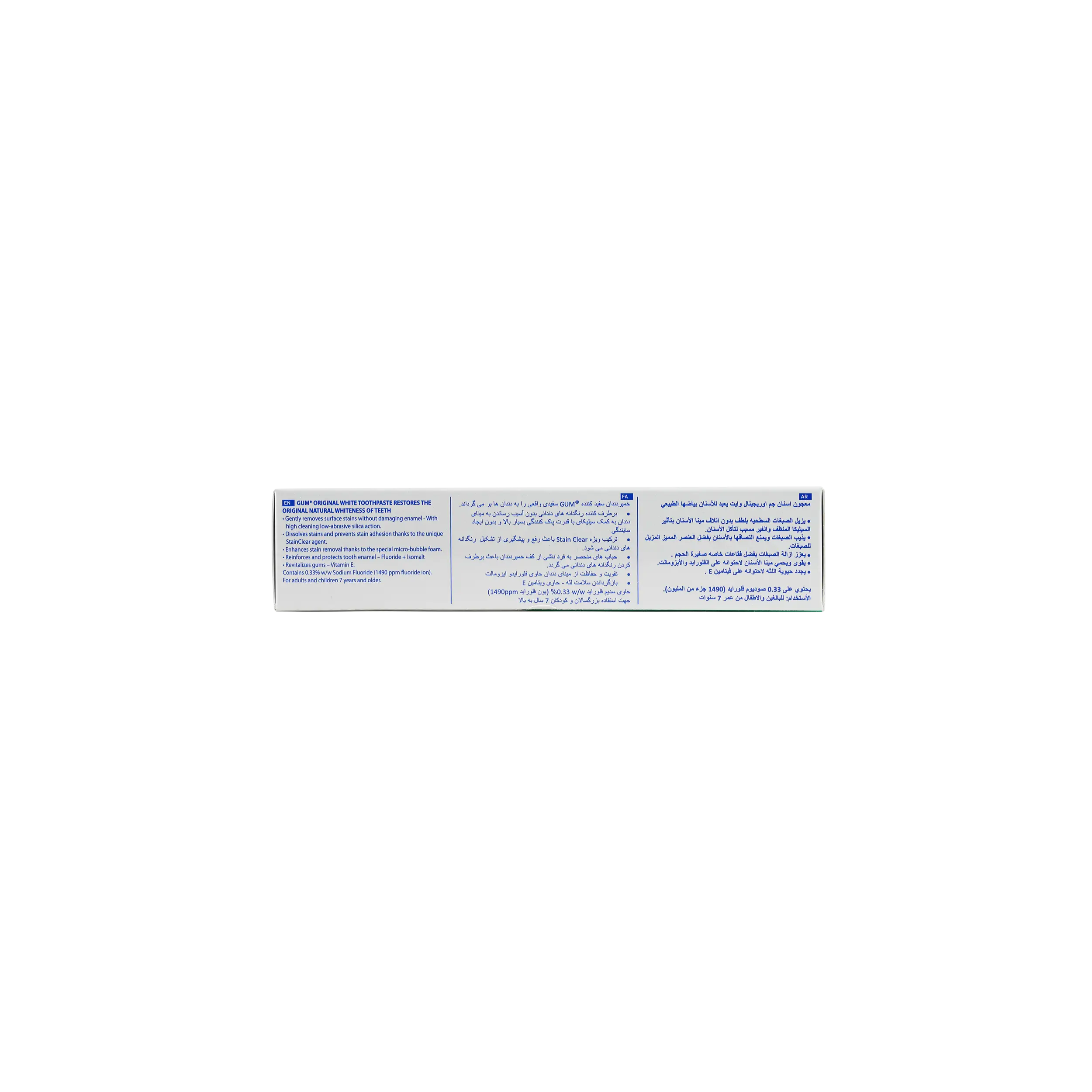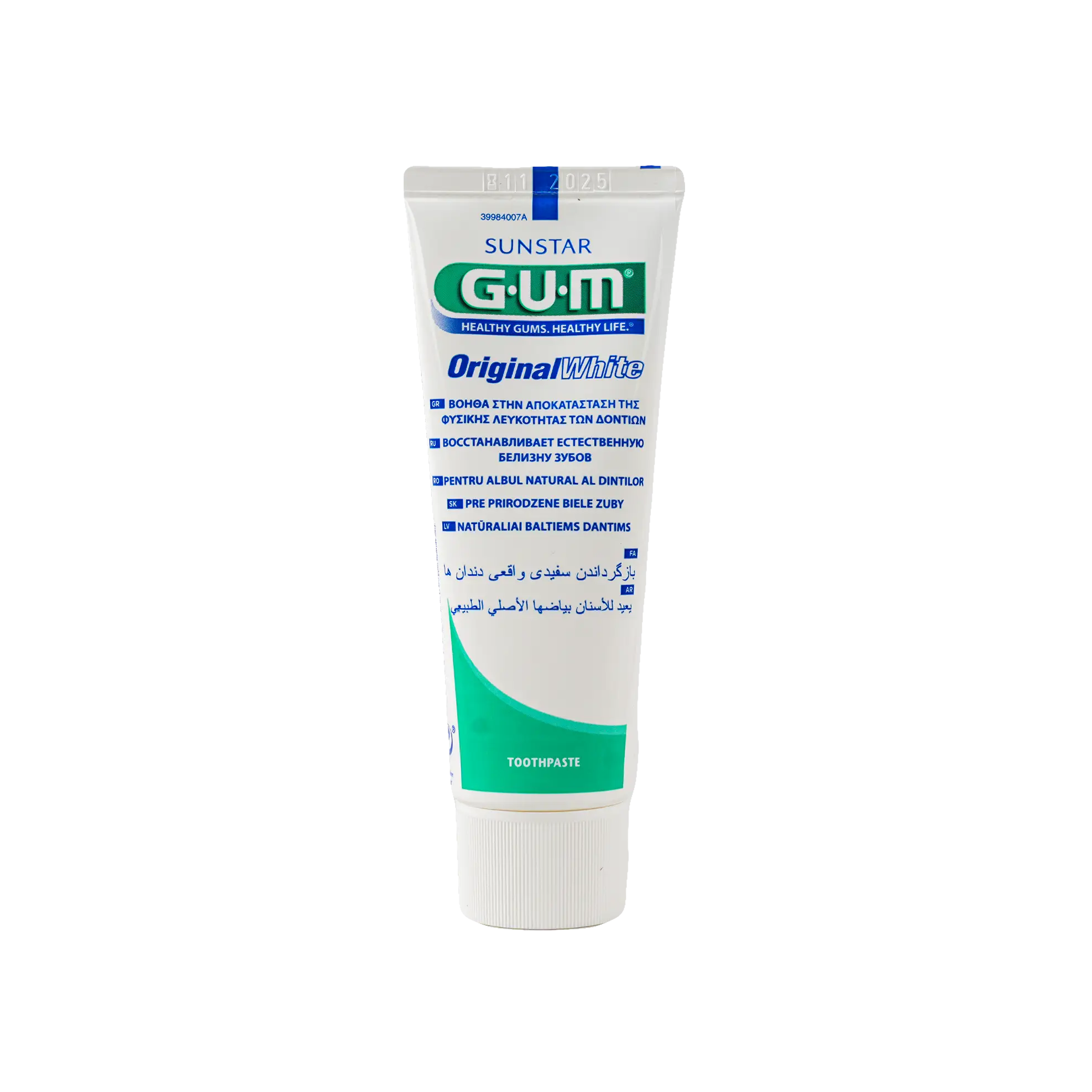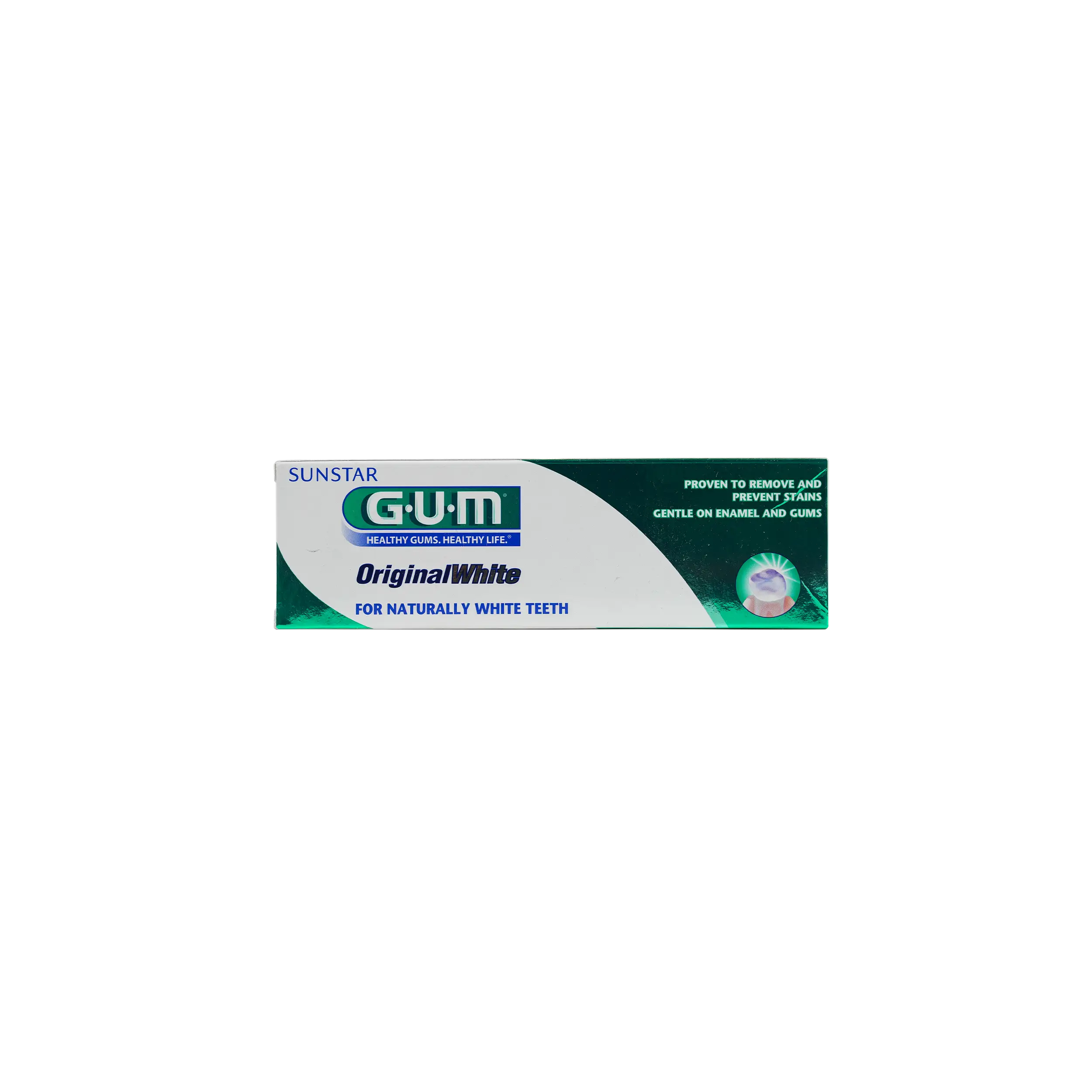 معجون أسنان GUM الأصلي الأبيض مُصمم خصيصًا لتبييض الأسنان وحماية ابتسامتك مع توفير تنظيف منعش بنكهة النعناع. يجمع هذا المعجون بين فعالية التنظيف القوية وتقنية التبييض اللطيفة للمساعدة في إزالة البقع السطحية ومنع ظهور بقع جديدة.