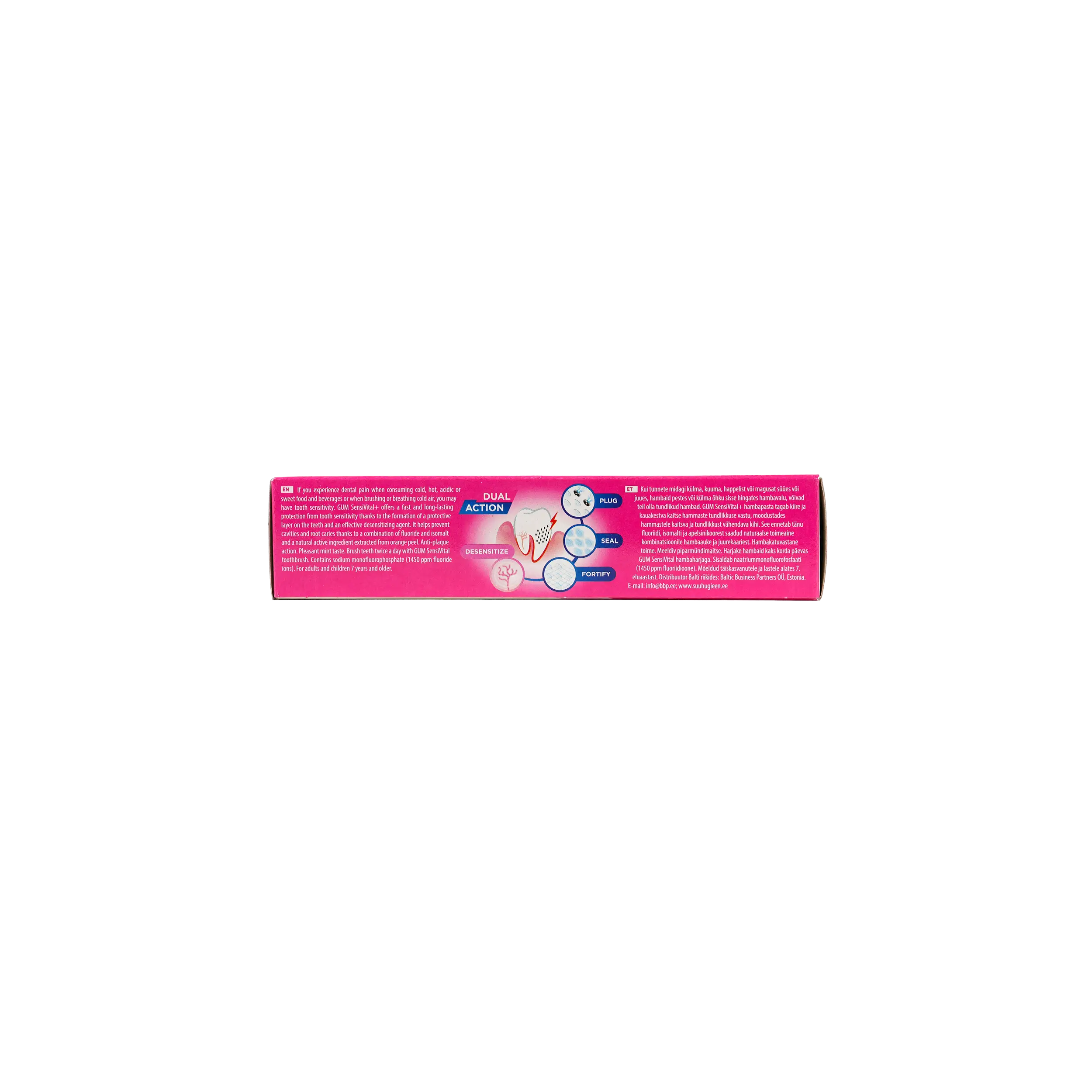 معجون أسنان GUM Sensivital Plus مُصمم خصيصًا لتخفيف ألم الأسنان الحساسة، مع توفير حماية شاملة ضد التسوس والبلاك وأمراض اللثة. صُمم هذا المعجون للمساعدة في تخفيف حساسية الأسنان من خلال تكوين حاجز وقائي عليها، مما يُخفف الانزعاج الناتج عن تناول الأطعمة والمشروبات الساخنة أو الباردة أو الحلوة.