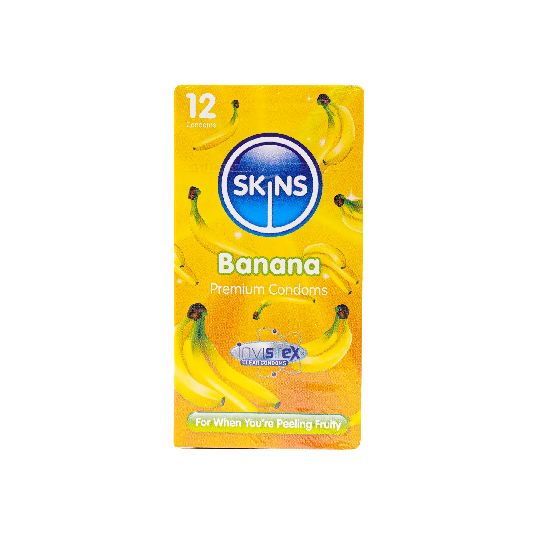 فوائد: يساعد الواقي الذكري بنكهة الموز من Skins على: توفير حماية فعالة ضد الأمراض المنقولة جنسيا والحمل غير المرغوب فيه. تعزيز المتعة مع نكهة الموز الفريدة